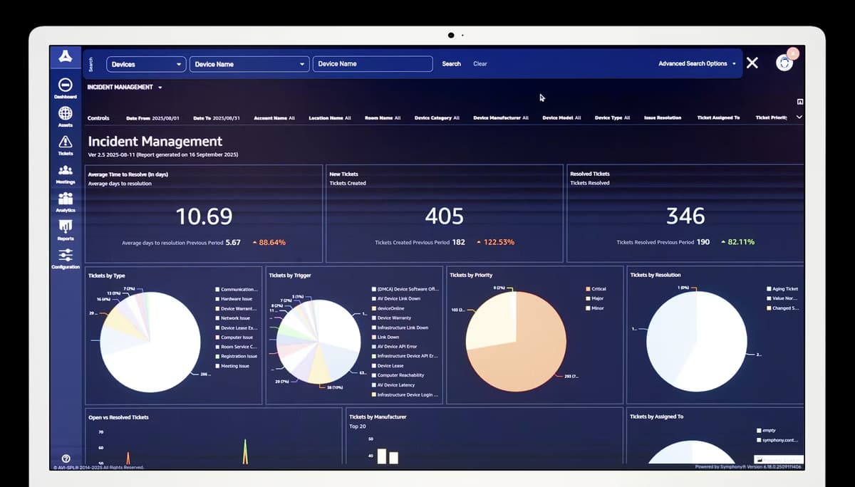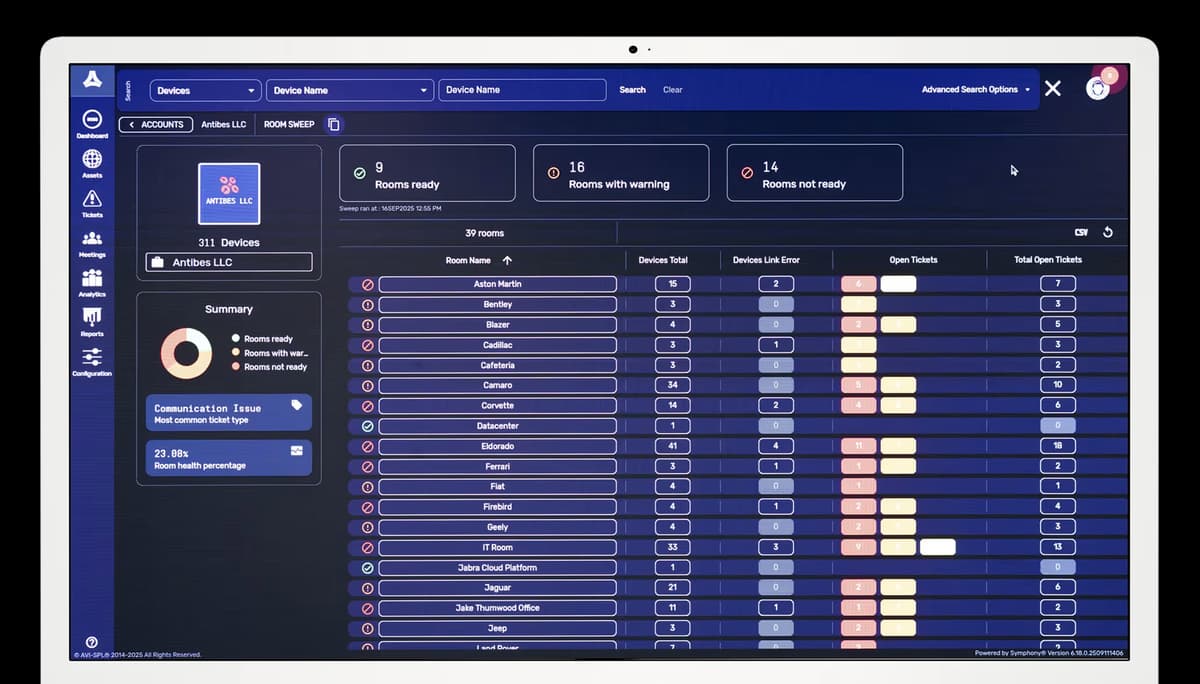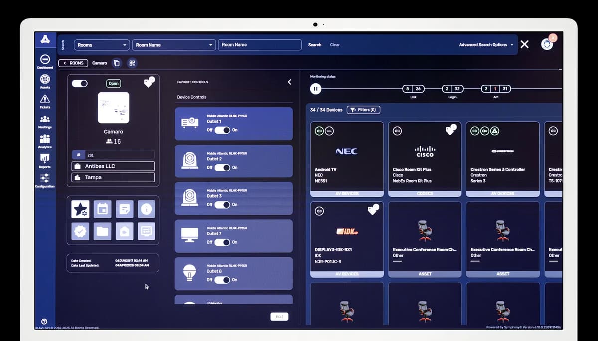 Symphony is an award-winning remote monitoring and management platform to administer, monitor, control, and analyze your multi-vendor AV, UC, and meeting environments.